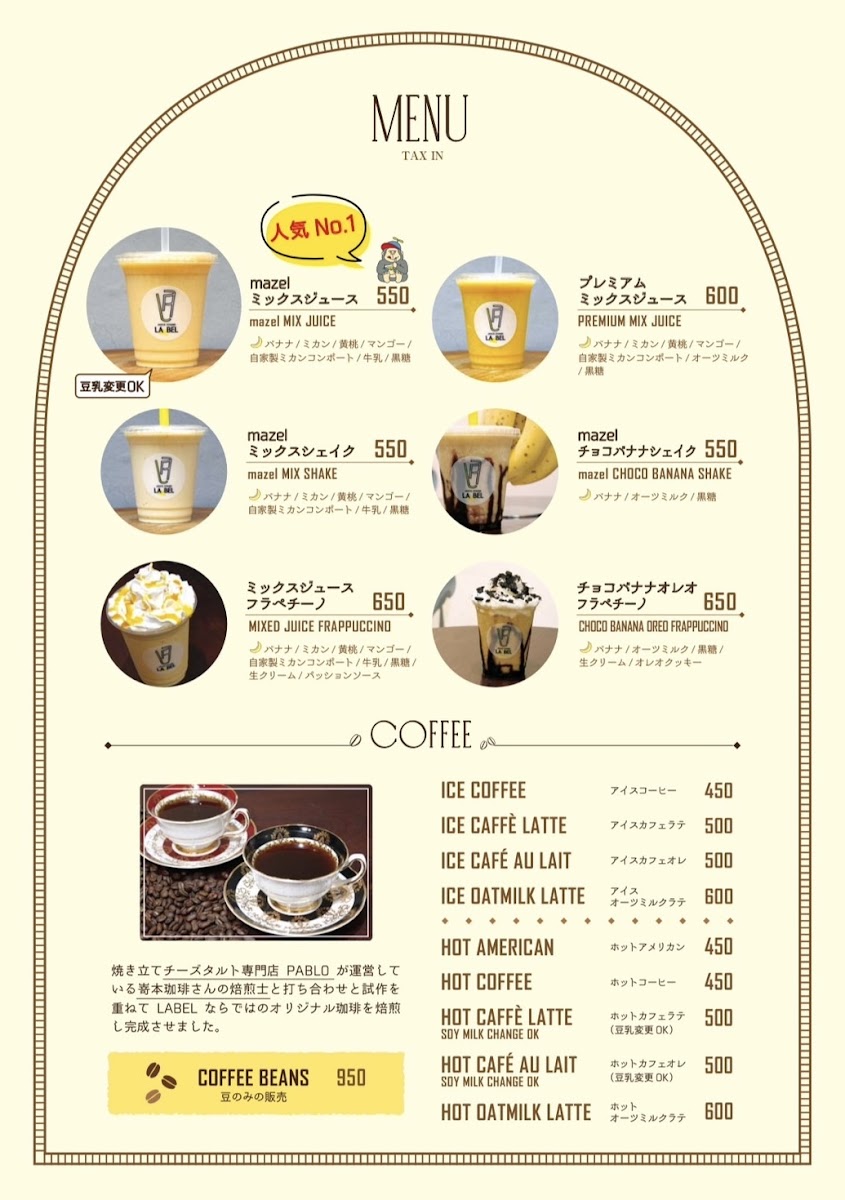 Welcome to The La Bel, a charming café located in Osaka's Fukushima Ward, just a stone's throw from JR Fukushima Station. This delightful spot specializes in refreshing and nutritious mixed juices, expertly crafted using fresh, organic ingredients. Patrons rave about the Premium Mixed Juice, featuring a harmonious blend of ripe bananas, yellow peaches, mango, and pesticide-free mikan compote, offering a subtly sweet and refreshing experience without excess sugar.